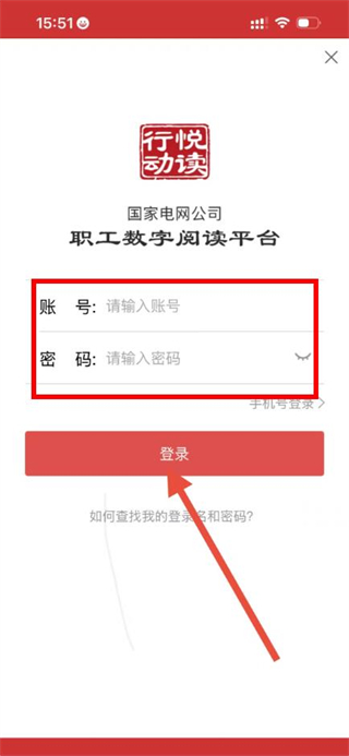 3、輸入賬號和密碼,點擊登錄按鈕,即可完成書香國網(wǎng)app的密碼登錄操作。