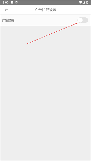 4、在廣告攔截設(shè)置頁面,點擊廣告攔截右側(cè)的開關(guān)按鈕,將其開啟。