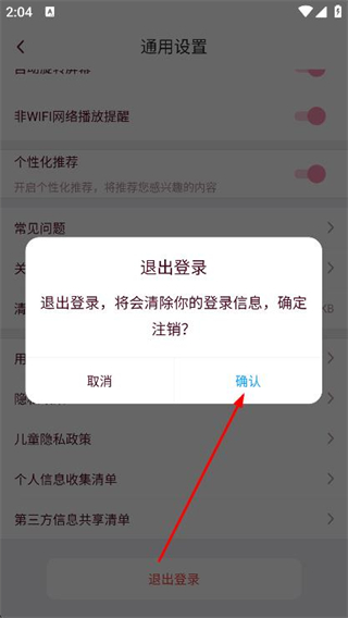 4、在彈出的提示框中,點(diǎn)擊確認(rèn)即可退出登錄。