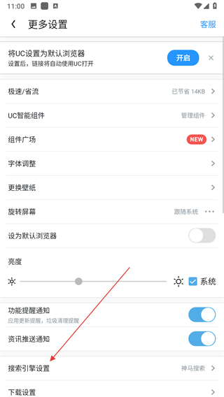 3、在更多設(shè)置頁面,點(diǎn)擊搜索引擎設(shè)置選項。