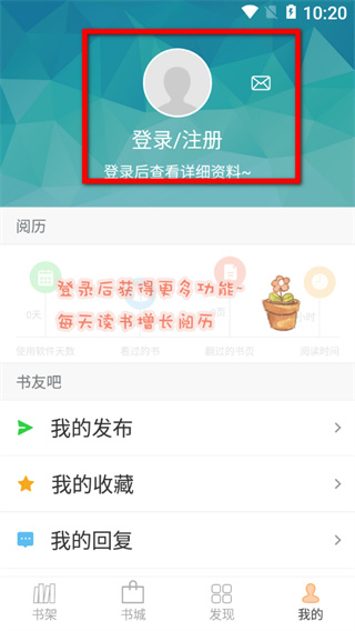 1、在閱讀APP書架頁面,點擊右下角我的選項,進入個人頁面。