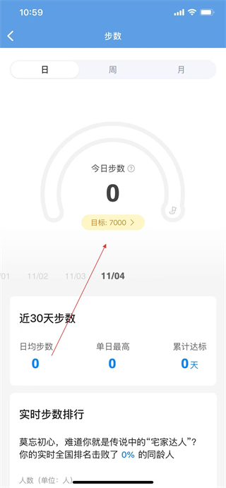 2、在步數(shù)頁(yè)面點(diǎn)擊目標(biāo):7000選項(xiàng)。