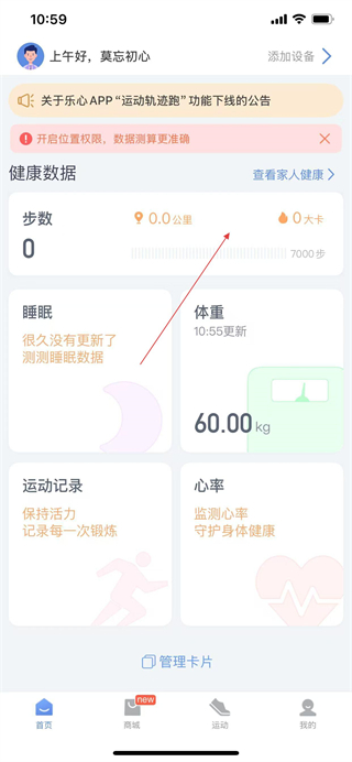1、打開樂(lè)心健康A(chǔ)PP,點(diǎn)擊步數(shù)板塊。
