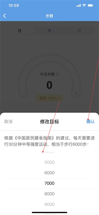 3、選擇所需的步數(shù)目標(biāo),點(diǎn)擊確認(rèn),即可修改。