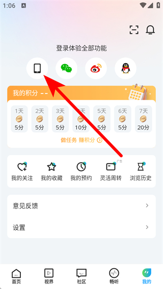 2、在個(gè)人的頁(yè)面中,需要點(diǎn)擊手機(jī)圖標(biāo),用手機(jī)號(hào)登錄方式。