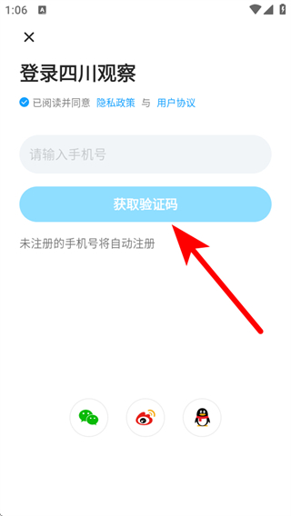 3、進(jìn)入登錄頁(yè)面后,輸入11位手機(jī)號(hào),點(diǎn)擊獲取驗(yàn)證碼。
