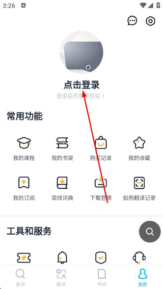2、在我的頁面中,點(diǎn)擊上方的點(diǎn)擊登錄選項(xiàng)。