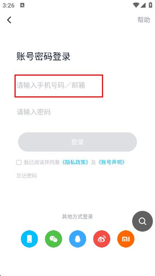 3、在請輸入手機(jī)號碼/郵箱輸入框中填寫賬號。