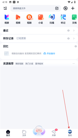 1、打開(kāi)百度網(wǎng)盤(pán)APP,點(diǎn)擊右下角我的。