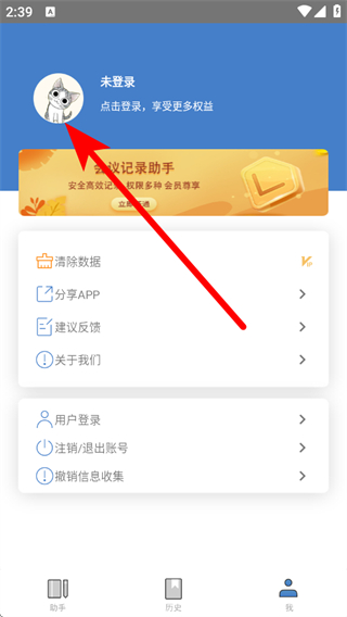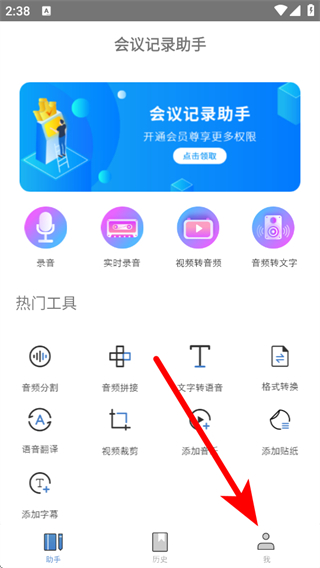 1、打開會議記錄助手APP,點擊右下角我,進入個人頁面。