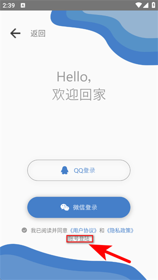 3、在登錄選擇界面,點擊賬號登錄,進入賬號密碼登錄頁面。