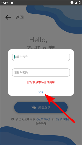 4、在頁面中輸入賬號和密碼后,點擊登錄,完成賬號登錄操作。