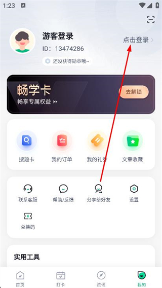 2、在我的頁面中,找到并點(diǎn)擊上方的點(diǎn)擊登錄選項(xiàng)。