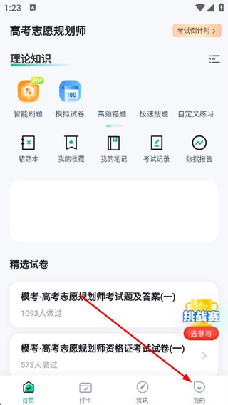 高考志愿規(guī)劃師APP新增模擬考試功能,高考生可按照自我練習(xí)的考點(diǎn)選擇相對應(yīng)的模擬試卷,也可選擇搭配好的模擬整卷考試。