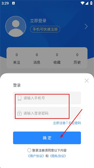 4、輸入手機號和密碼,點擊確定,即可完成登錄。