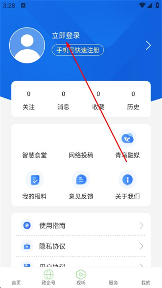 2、在我的頁面,找到并點擊上方的立即登錄區(qū)域。