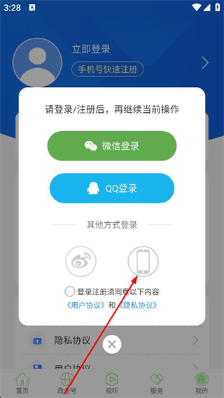 3、在登錄彈窗中,找到并選擇下方手機登錄選項。