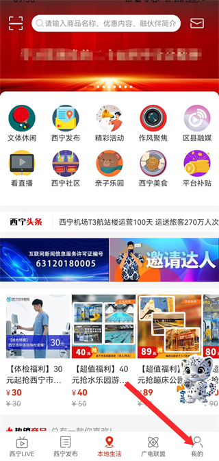 1、打開掌上西寧APP,點(diǎn)擊右下角我的,進(jìn)入個(gè)人頁面。