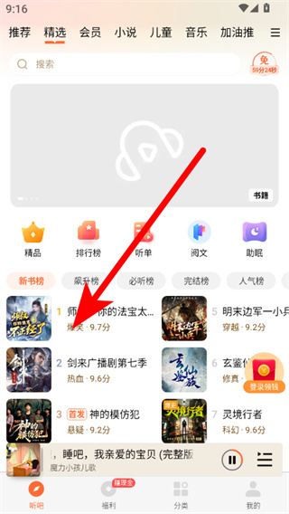 2、隨后,進入到首頁就能看到豐富的書本,隨手點擊都能免費收聽;