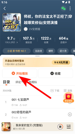 3、接著,點擊進入找到【開始播放】,任何狀態(tài)下都能直接收聽書本;