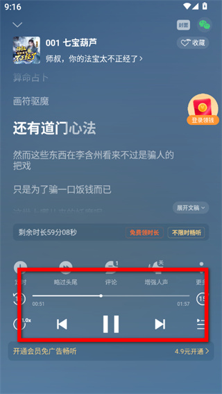 3、在聽書界面,控制播放進度,還能使用跳過、暫停等功能正常聽書。