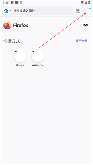 1、打開火狐瀏覽器,點擊三點菜單圖標。