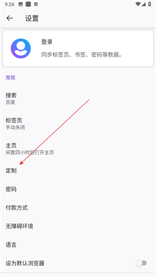 3、在設置頁面,找到并點擊定制選項。