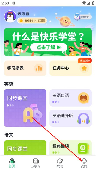 1、打開快樂學(xué)堂學(xué)生端,點(diǎn)擊底部導(dǎo)航欄我的。