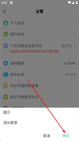 4、在彈窗中,點(diǎn)擊確定按鈕即可完成退出登錄。