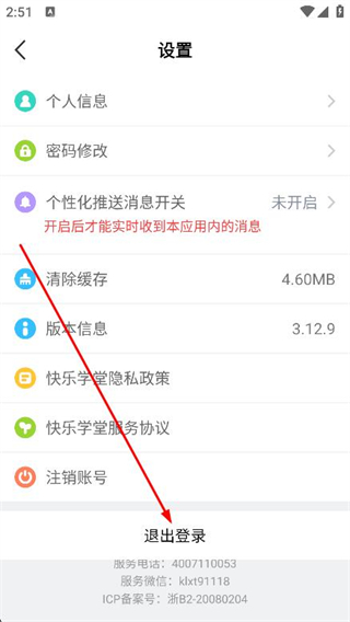 3、進(jìn)入設(shè)置頁面后,點(diǎn)擊下方的退出登錄選項(xiàng)。
