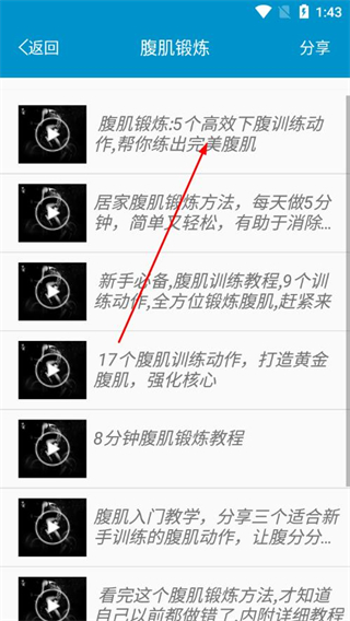 2、進(jìn)入所選健身類別頁(yè)面后,點(diǎn)擊具體的健身教程視頻。
