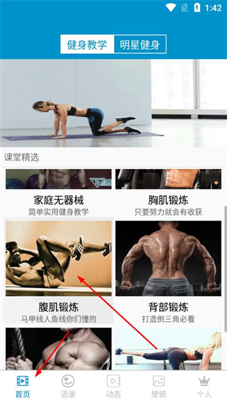 1、打開健身教學(xué)APP,在首頁(yè)的課堂精選板塊中,選擇想要學(xué)習(xí)的健身類別。
