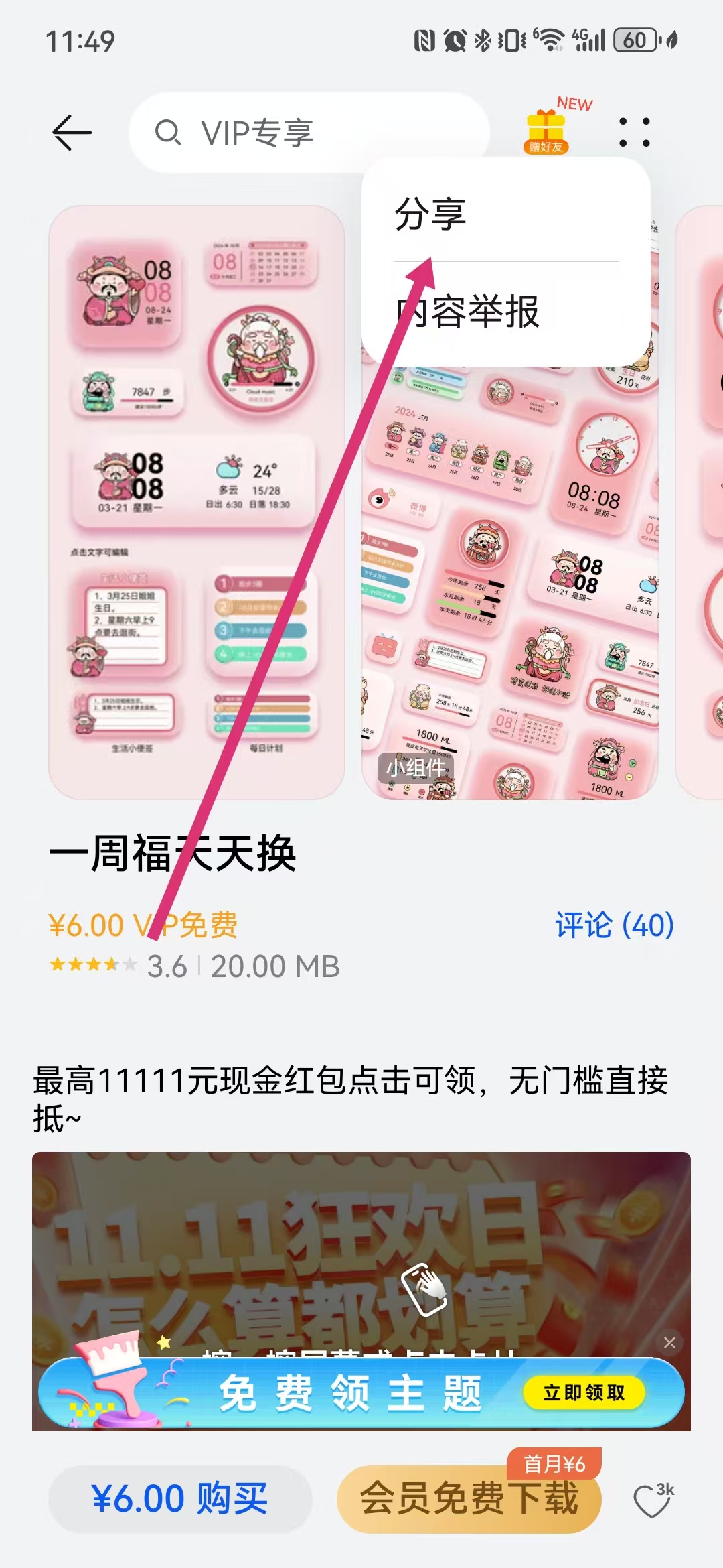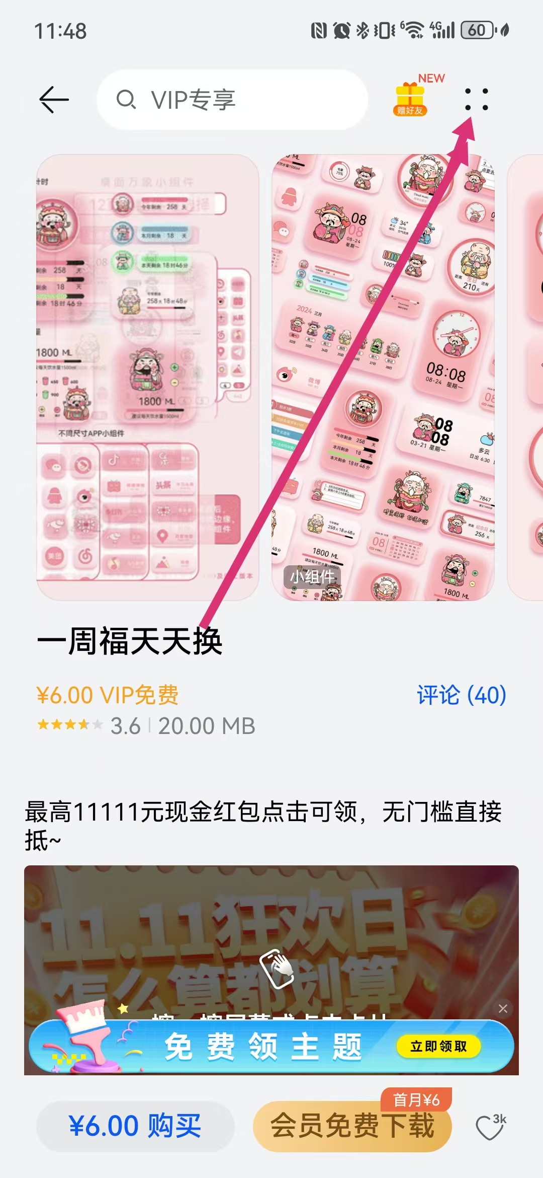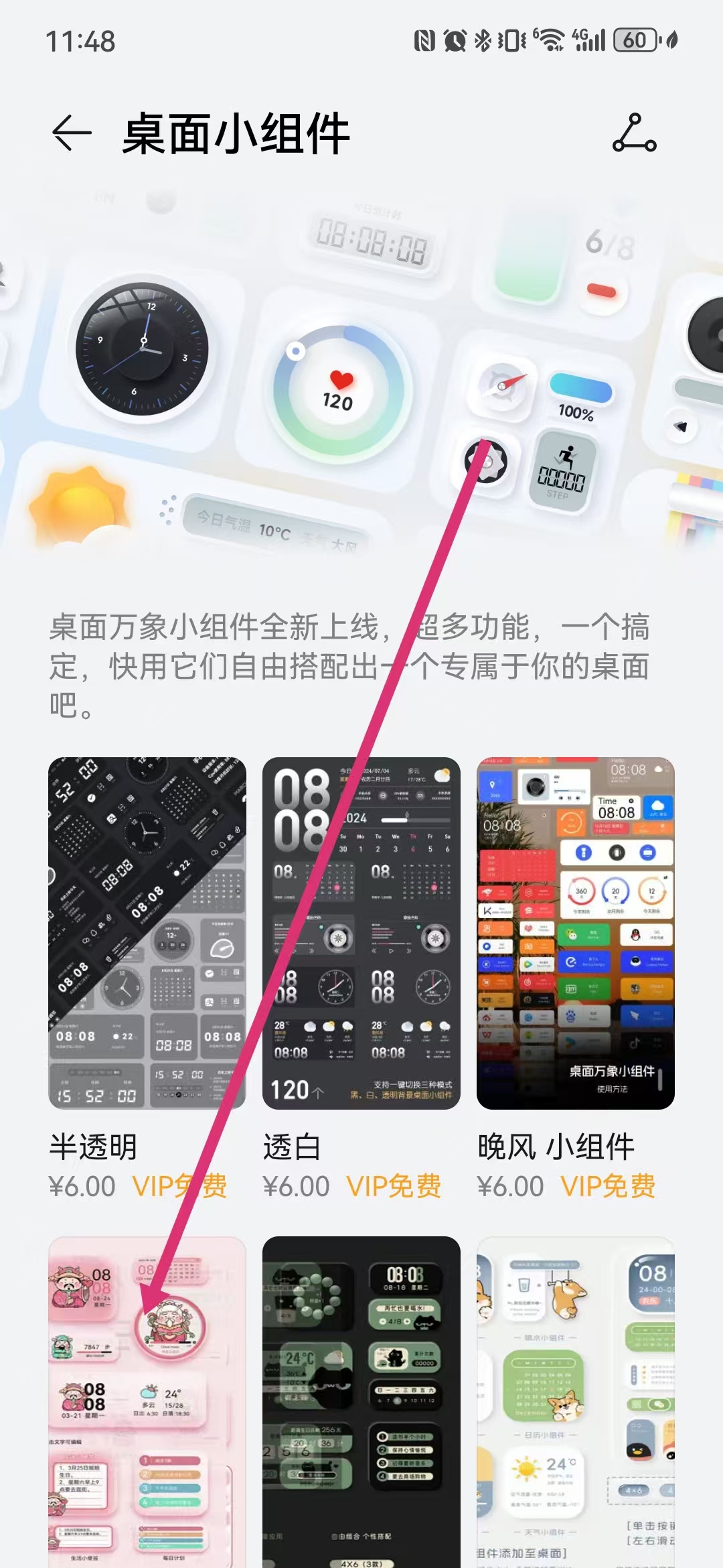 1、在華為主題桌面小組件頁面,點擊要保存圖片的主題,進(jìn)入主題詳情界面。