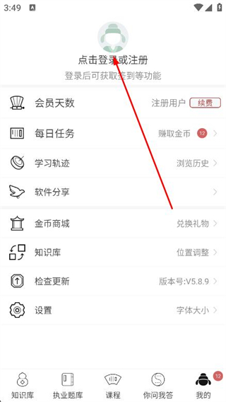 2、在個人頁面中,點擊上方點擊登錄或注冊選項。
