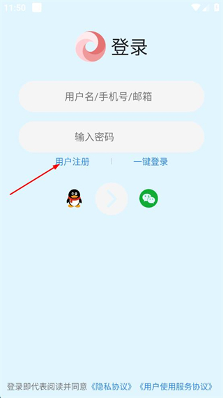 3、在登錄界面,點擊“用戶注冊”按鈕,進入注冊界面。