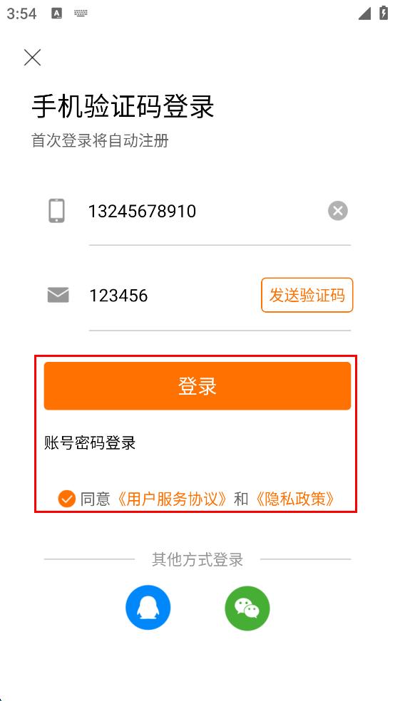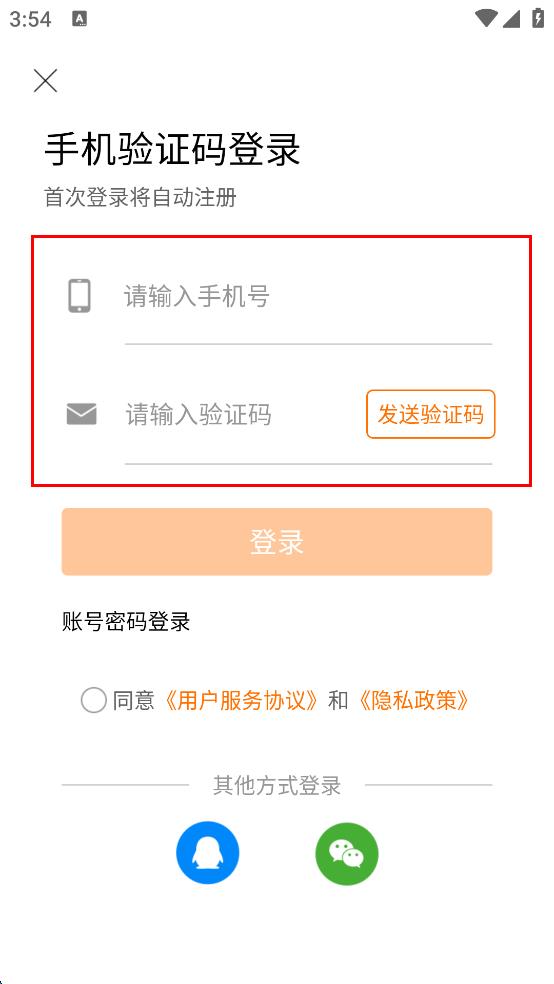3、在我的頁面,進(jìn)入手機(jī)驗(yàn)證碼登錄界面,輸入手機(jī)號,獲取并填寫驗(yàn)證碼,勾選相關(guān)協(xié)議。