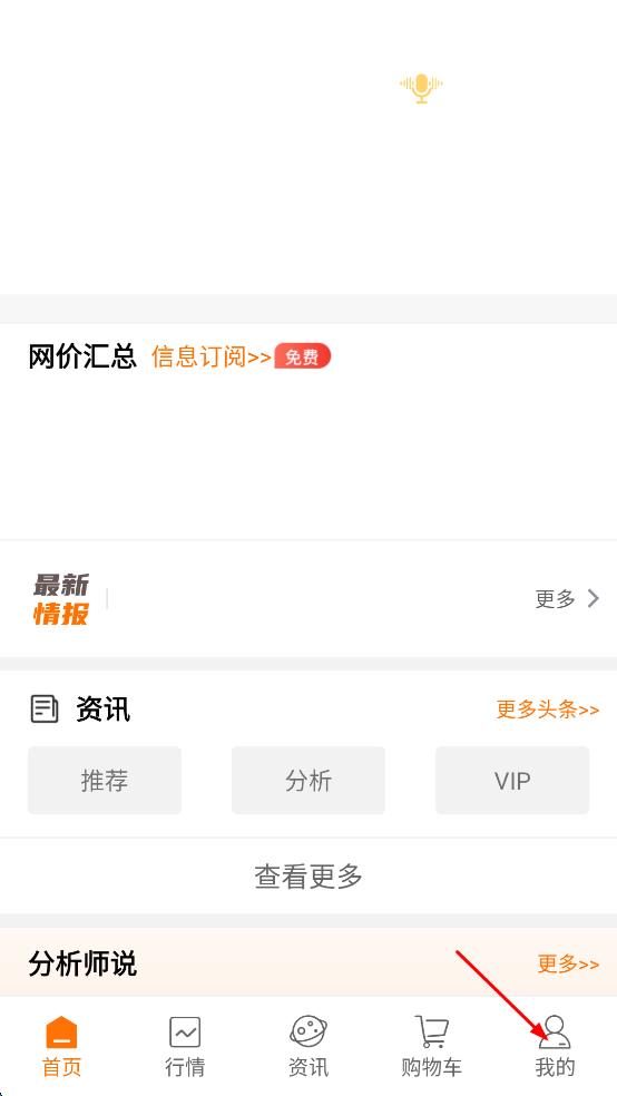 2、進(jìn)入中鋼網(wǎng)首頁,點(diǎn)擊頁面右下角我的選項(xiàng)。
