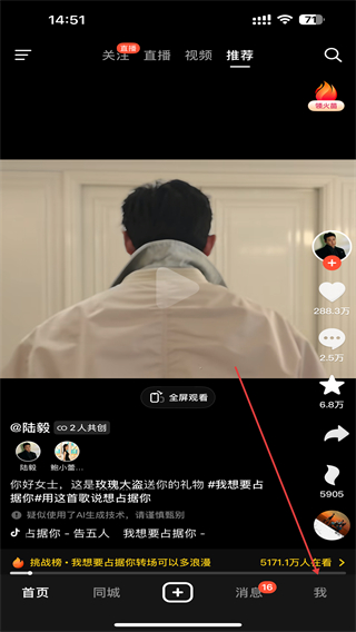 1、打開火山小視頻的APP,在首頁內(nèi)點(diǎn)擊右側(cè)分享的按鈕。