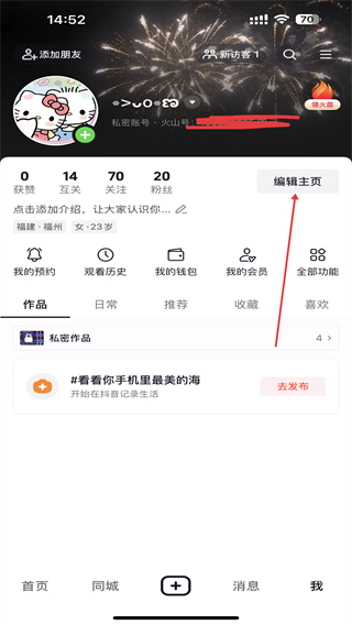2、進(jìn)入我的主頁內(nèi),點(diǎn)擊編輯主頁的功能按鈕。
