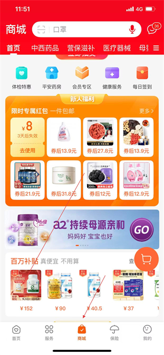1、打開(kāi)平安好醫(yī)生APP,進(jìn)入商城頁(yè)面,進(jìn)行瀏覽。