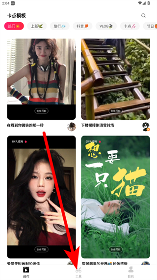 1、打開愛剪輯應(yīng)用,點擊底部創(chuàng)作界面中的工具選項。