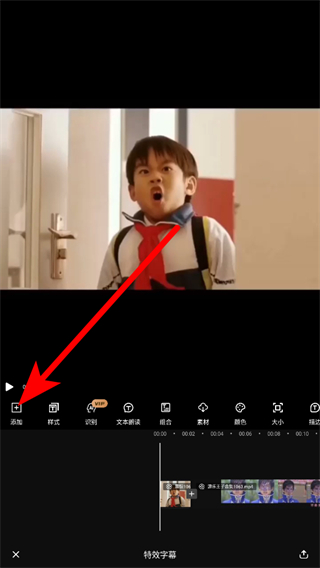 4、視頻導(dǎo)入后,進(jìn)入編輯界面,點擊底部的添加按鈕,輸入想要添加的字幕文字。