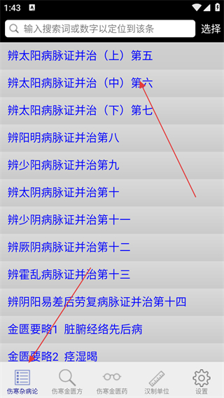 1、可查看傷寒雜病論的具體篇章,如辨太陽(yáng)病脈證并治等多個(gè)部分,方便學(xué)習(xí)經(jīng)典原文。