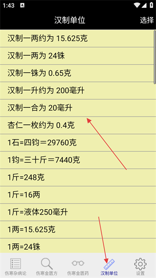 4、提供漢制與現(xiàn)代單位的換算,如漢制一兩約為15.625克、一升約為200毫升等,理解古代方劑劑量。