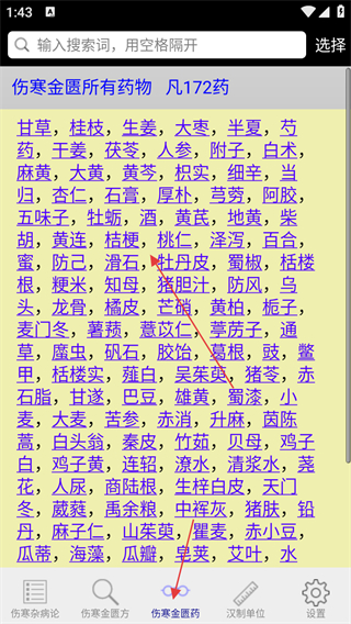 3、涵蓋172味藥物,包括甘草、桂枝、人參等,便于了解藥物在傷寒金匱中的應(yīng)用。
