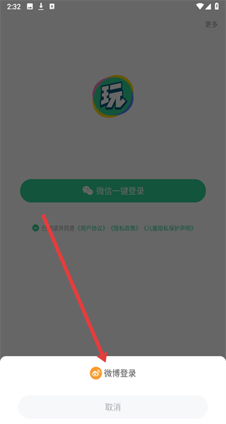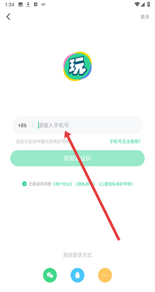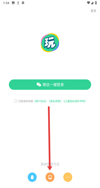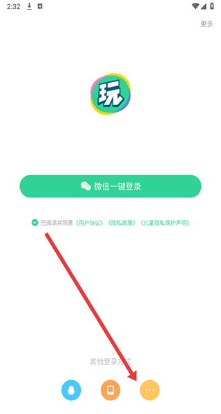 2、在進(jìn)入到會玩登錄頁面中,可以點擊箭頭指向按鈕,查看更多登錄方式。