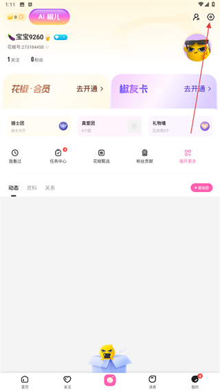 2、進入我的頁面內,點擊右上角設置的功能按鈕。