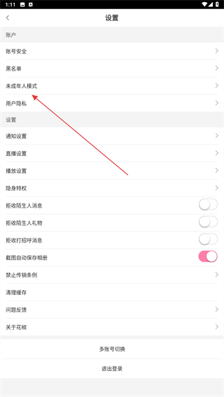 3、進入設置的界面內,點擊未成年人模式的按鈕。