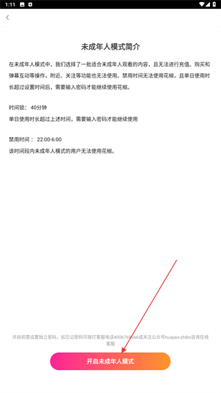 4、了解該模式后,再點擊下方開啟未成年人模式即可。