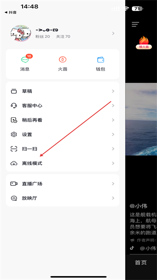 2、在左側(cè)彈出的菜單欄中,點(diǎn)擊離線模式的按鈕。